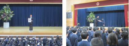 本校では17日に6年生が卒業し、4年生・5年生だけの修了式になりました。校長先生から5年生の代表児童に修了証が渡され、4年生の代表児童がこの春休みに頑張りたいことを発表しました。最後に全員で元気よく校歌を歌いました。