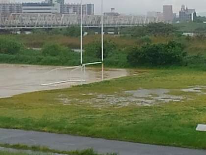 楽しみにしていた初めての遠足。でも、お天気には勝てません。昨晩からの雨で、河川敷は水浸し。これでは、いくら雨がやんでも気持ちよく遊べません。仕方がないですね。