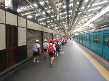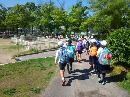 晴天となり絶好の遠足日和の今日。3年生は長居公園に遠足に出発しました。