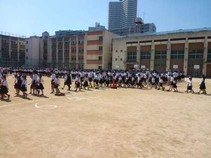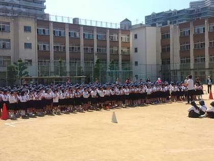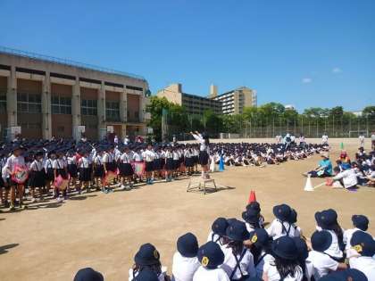本校と分校とで離れて学習しているので、全校児童が一堂に会する数少ない機会です。1500人近くの児童が運動場に集まり、短い時間でしたが交流を深めることができました。