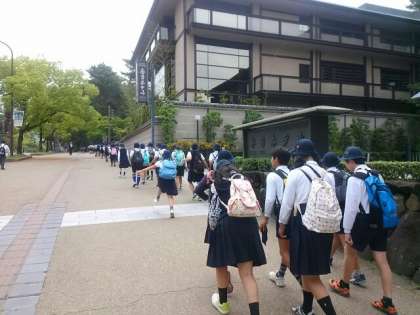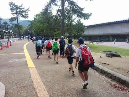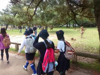 奈良に着きました。大仏殿に向かっています。風は冷たいぐらいで気持ちよく、絶好の遠足日和になりました。