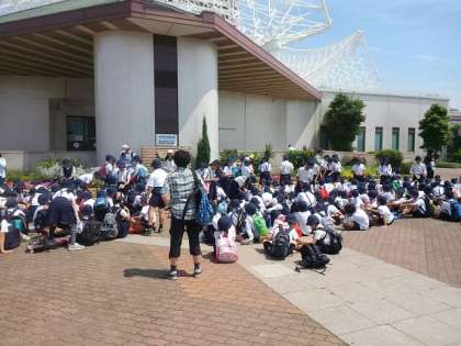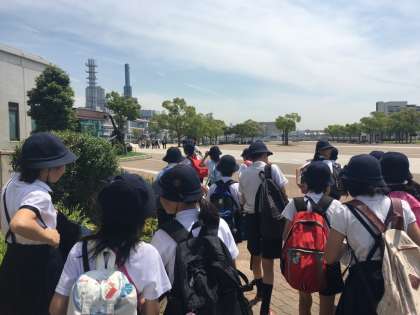 これから班行動。「遠足楽しみ隊」の出番です。海洋博物館、ポートタワー、震災メモリアルパークを見学します。