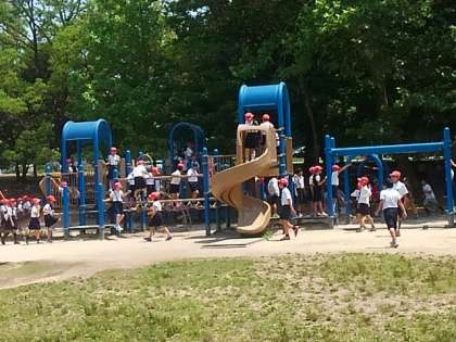 木陰でゆっくりおやつを食べたり、遊具で遊んだり、鬼ごっこをしたり…