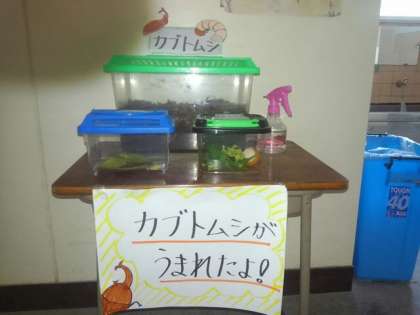 4月29日に、福知山市三和町友渕よりいただいてきたかぶと虫の幼虫。分校を中心に大切に育ててきましたが、とうとう成虫になり始めました。