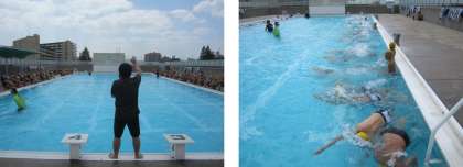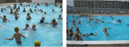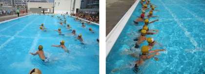 梅雨が明け、いい天気の中、体育のプール水泳がありました。暑い中、子どもたちは、プールの中で気持ちよさそうに泳いだり、ゲームをしたりしてプール水泳を楽しんでいました。