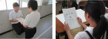校長先生や生活指導担当の先生から、一人ひとりが夏休みの目標を持ち、生活のルールを守って安全な暮らしをしてほしいことを話されました。また、各学年の代表児童が1学期頑張ったことや夏休みにしたいことなどを発表し、最後に全員で校歌を元気よく歌いました。その後、担任の先生から通知票をもらい、もらった通知票を真剣に見つめていました。