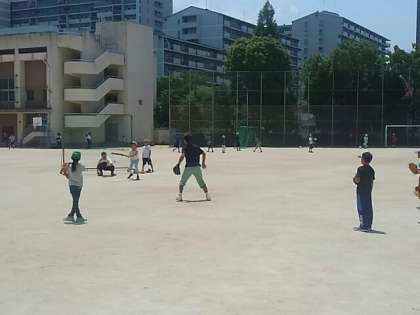 夏休みにしかできないことの一つとして、大阪市小学校体育連盟では、各種のスポーツ交流会を企画・運営しています。友渕小学校では、今年は、ソフトボール交流に参加することになり、29日の予選に向けて昨日より練習してます。