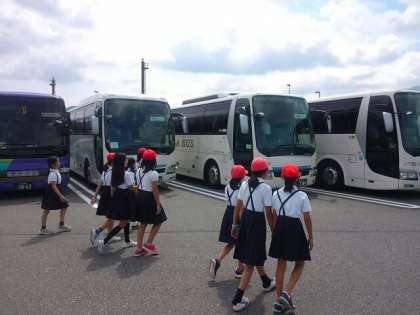 道の駅、但馬のまほろばで2回目のトイレ休憩をしました。ここでは他校の林間学習に行くバスもたくさん止まっています。