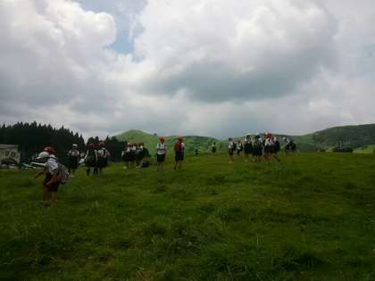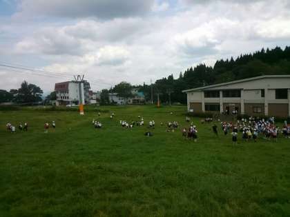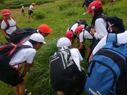 宿舎の方が前の学校との入れ替わりのため、時間待ちで高原で遊んでいます。無数にいるバッタに大騒ぎです。