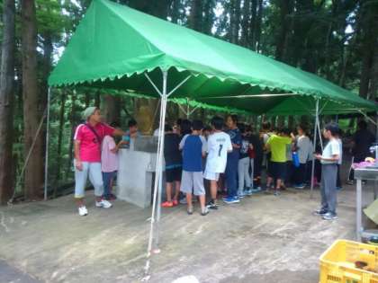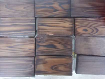 お風呂タイムの待ち時間の間に、明日の午前にペイント予定の焼き板を磨いています。