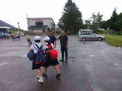 名残惜しい気持ちがいっぱいですが、ハチ高原を予定通り13時ちょうどに出発しました。みやま荘の皆さんも手をふって見送ってくださいました。