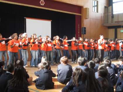 ゲストティーチャーを招いて講堂で5・6年生の子どもたちを対象に「みんなトモダチ☆コンサート」をしました。素敵な歌を通して人と人・心のつながりを考え、深める機会にすることができました。
