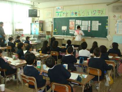 こども達が自分の歯と口の健康に興味を持ち、生涯にわたって健康な生活を送る基礎を養うことを目標に発達段階に合わせて2・4・6年生と、歯科衛生士の方よりはみがき指導を受けています。