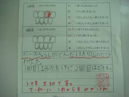 これからも、ていねいにはみがきをする習慣を身につけてほしいと願っています。