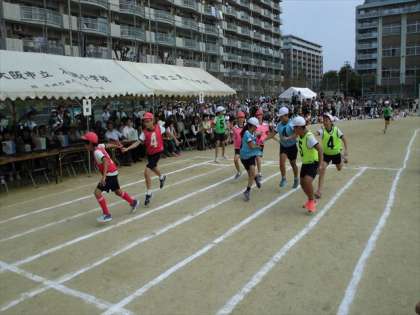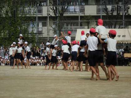 「騎馬戦 〜団結力で勝利をつかめ〜」・「紅白対抗リレー 〜勝利へのバトン〜」・「組立体操 〜平和〜」では、一人一人の子どもたちが自分の力をしっかり発揮し、すばらしい運動会になりました。