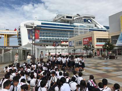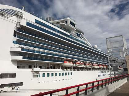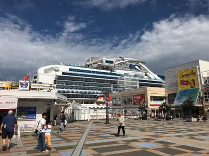 今日は欧米からの観光客が多いなあと思っていたら、何とダイヤモンドプリンセスが停泊していました。ロンドンからですね。ダイヤモンドプリンセス丸ですから。