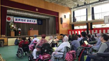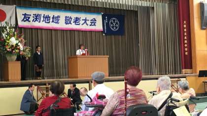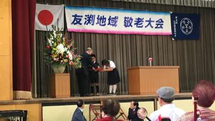 10月16日の日曜日に友渕中学校で友渕地域の敬老大会がありました。