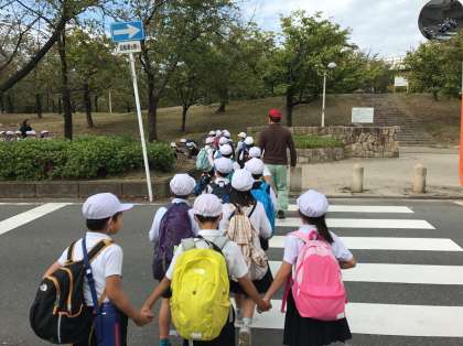 いい天気の中、今日は1年生の遠足「天王寺動物園」です。
