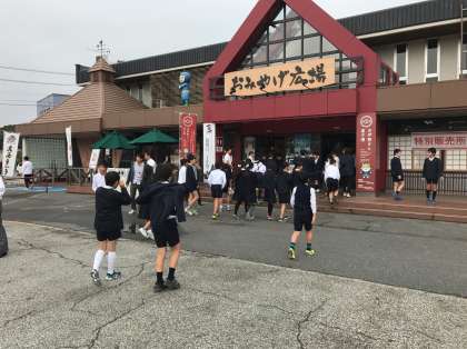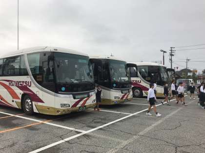 子どもたちは、バスから降りて、体を伸ばしたり、トイレに行ったりして、リフレッシュしています。まだまだ元気いっぱいです。