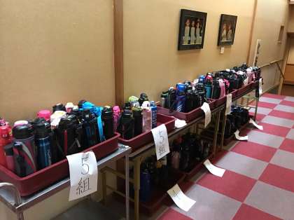 朝、食堂に上がると、170人分の水筒にお茶が補給されていました。