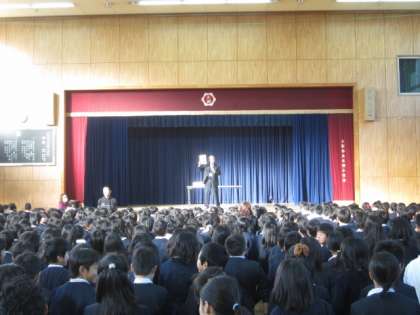 本校では講堂で、分校ではテレビ放送を通して、校長先生・副校長先生や生活指導担当の先生方から冬休みの生活の仕方についてお話がありました。
