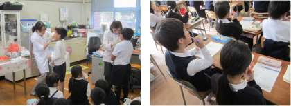 各教室で歯科衛生士さんから、むし歯になる仕組みや正しい歯みがきの仕方を教えていただきました。その後、保健室で校医先生にフッ化物塗布をしていただきました。フッ化物塗布をすることにより歯が強くなり、むし歯になりにくくなります。でも、むし歯を防ぐには、普段からの食生活や歯みがきなどの規則正しい生活習慣が大切であると言われています。今晩から、歯磨きをしっかりと頑張ってほしいです。