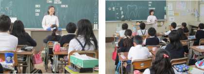 4年生が歯科の校医先生や歯科衛生士さんに来ていただき「歯の大切さ・むし歯の原因・歯みがき・フッ化物」などについて学習をしました。
