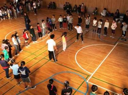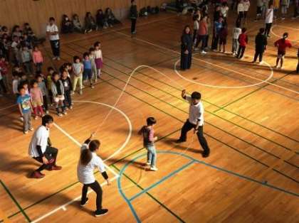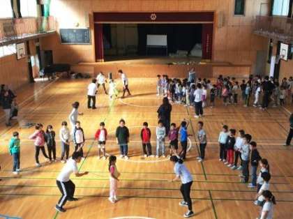 5名のインストラクターをお招きし、PTA主催のダブルダッチ体験が本校の講堂で行われました。