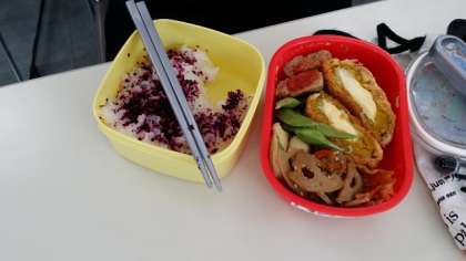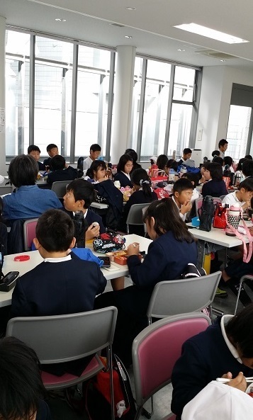 しっかり見学して回ったのでおなかがすきました。待ちに待ったお弁当タイムです。科学館の中の部屋で食べています。