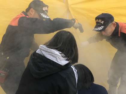 5年生は総合的な学習で「防災」について学習しました。都島消防署の方や都島区役所の方に来ていただいて「自然災害への備え」について教えていただきました。講堂では地震や津波などの自然災害のようすやその被害を防止するために自治体が行っている対策や事業などを紹介していただきました。また、煙の中を歩く貴重な体験をしたり、非常持ち出し品について説明していただいたりしました。子どもたちは今日の学習を通し、今まで以上に防災意識を高めることができたようです。