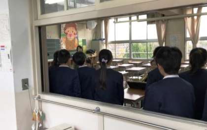 吹奏楽部のパート練習を見学させてもらいました。校舎内では、他に、美術部、家庭科部の活動も見学しました。