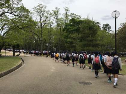 昼食をとった飛火野から、興福寺を通り、奈良駅へ向かいます。