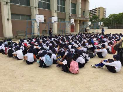 門で出迎えるとみんな元気なあいさつを返してきました。