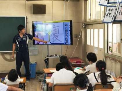 平成27年、28年で全学級に整備された60インチの大型テレビが授業で大活躍です。効果も絶大なので積極的に活用していきたいと思います。