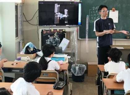 下〜6年生、宇宙ステーションについて学習しています。先生が事前に資料を授業用パソコンに入れておき、それを転写しながら学習しています。