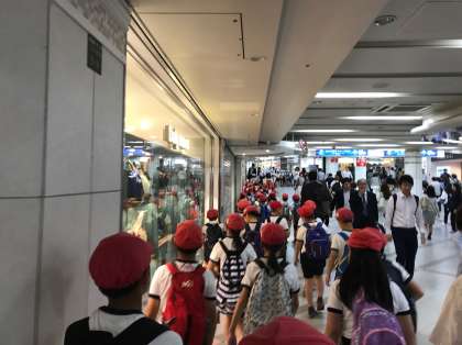 駅の中での集団歩行も、ルールを守ってしっかりとおこなっています。