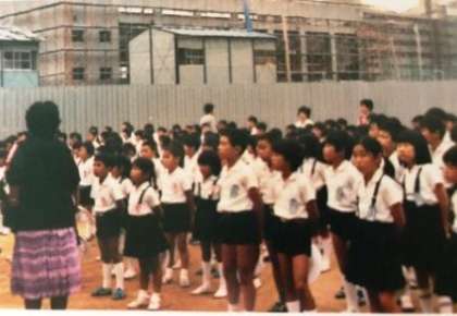 友渕小学校は、昭和56年4月1日に高倉小学校より分離独立という形で創設されました。しかし、校舎の建築が間に合わず、高倉小学校内に「同居開校」(写真上)となりました。