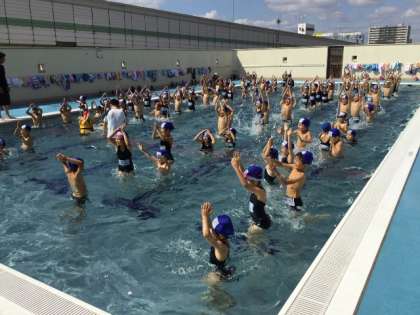 分校にいる1〜3年生にとっては、水慣れと浮く・泳ぐ運動といったクロールなどの泳法につながる大切な運動です。
