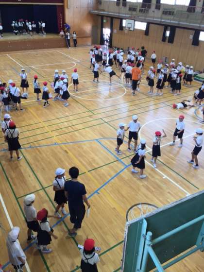 3年生と5年生が、本校の運動場・講堂・教室を使って交流します。
