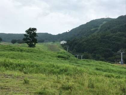 登る1221mの鉢伏山。左端から右端の山頂まで稜線上を歩きます。右の写真は対岸の氷ノ山、兵庫県最高峰の1510m。