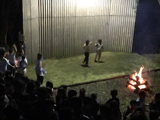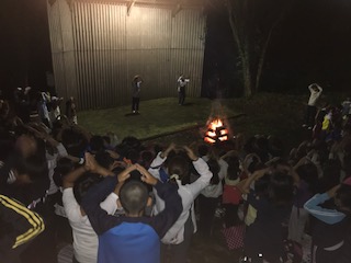 スタンツの合間には、キャンプファイヤー係のゲームもあります。