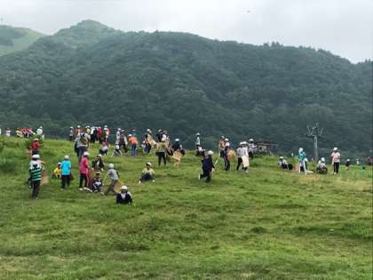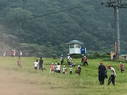 ゲレンデの水はけは考えられないほど良好で全くぬかるみはなく、草が湿っているだけ。