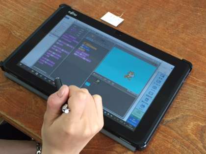 スクラッチとは、マサチューセッツ工科大学メディアラボがつくった子ども向けのプログラミング環境で、コーディング(キーボードから命令をテキストで入力する)が必要ないことから、教育現場でも注目を集めています。
