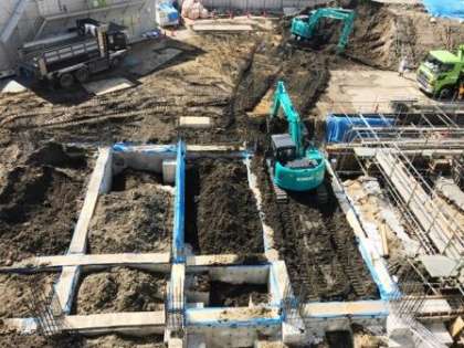 北半分は、2回めのコンクリート打設です。明日以降、足場が取り除かれ、来週早々には土もすべて埋戻しが終わるようです。