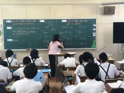 本校でも、5年生が「分数」の学習を始めています。こちらは、「分母がちがう分数のたし算」。通分してから計算するという作業が入るので、5年生も習熟度別少人数学習できめ細やかな指導をしています。分母が違うとたし算ができない理由を理解できるようになるためには、今、3年生が学習している分数の基本的なしくみをしっかり理解しておく必要があります。