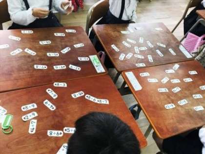 「7+5」のように、繰り上がりのあるたし算も学習しました。カードを使ってお友だちと仲よくゲーム形式で学習しています。