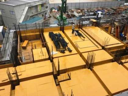 そのような天気の中でも、工事は着々と進んでいます。現在は1階部分のコンクリート打設に向けて、鉄筋と木枠工事が行われています。基礎工事の時には、どこがどうなるのかよくわかりませんでしが、ここが階段なんだ、ここはトイレだとわかるようになりました。