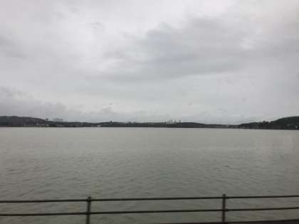 志摩スペイン村が見えてきました。あと少し。 小雨が降っています。