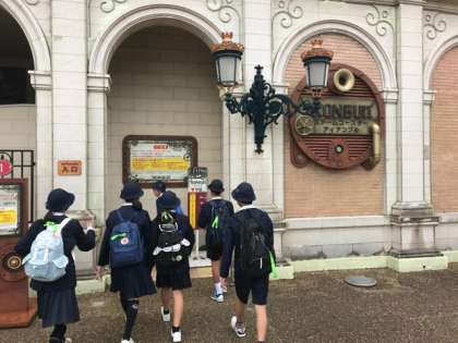シベレス広場でクラス写真を撮ったら、早速、活動開始です。