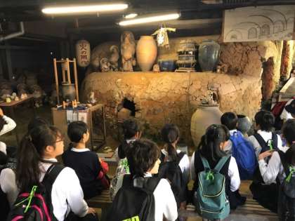1組、2組、5組は先にクラス写真を撮ってから、登り窯の説明と見学をします。